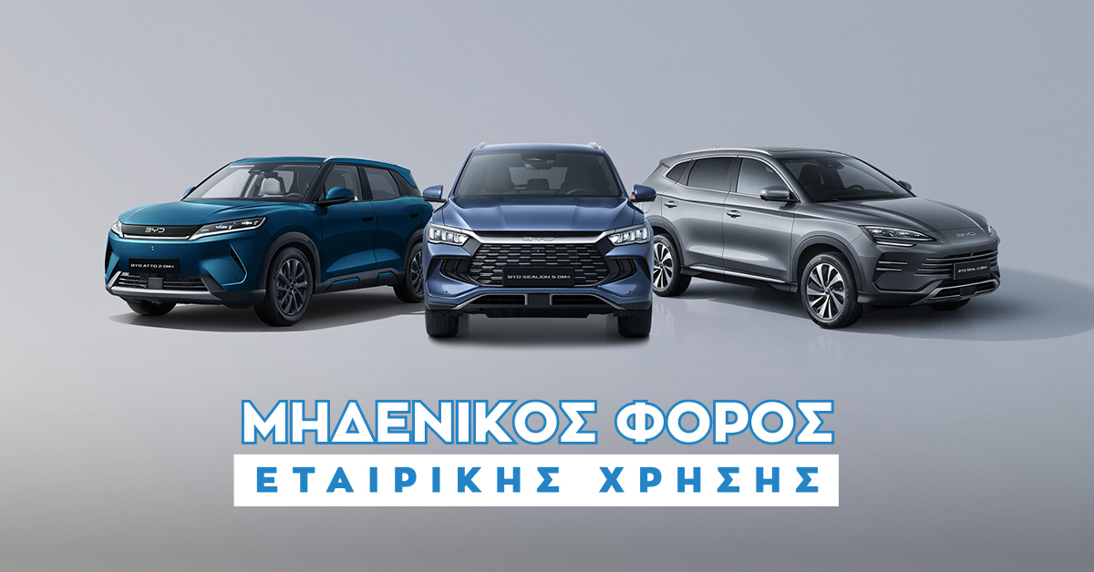 Ανακαλύψτε τα πλεονεκτήματα ενός εταιρικού αυτοκινήτου μέσα από τη γκάμα της BYD, που φέρνει ένα ξεκάθαρο όφελος: μηδενικό φόρο εταιρικής χρήσης στα Super Hybrid μοντέλα της. Έτσι, μπορείτε να οδηγείτε ένα προηγμένο plug-in hybrid όχημα με χαμηλό κόστος χρήσης και χωρίς επιπλέον φορολογική επιβάρυνση — μια ιδανική επιλογή για εταιρικούς χρήστες και fleet, που προσφέρει ουσιαστικό όφελος στην καθημερινότητα και περισσότερη αξία χωρίς συμβιβασμούς. Ισχύει για επιλεγμένες εκδόσεις μοντέλων με εκπομπές έως και 50g CO₂/km και ΛΤΠΦ έως 40.000€.